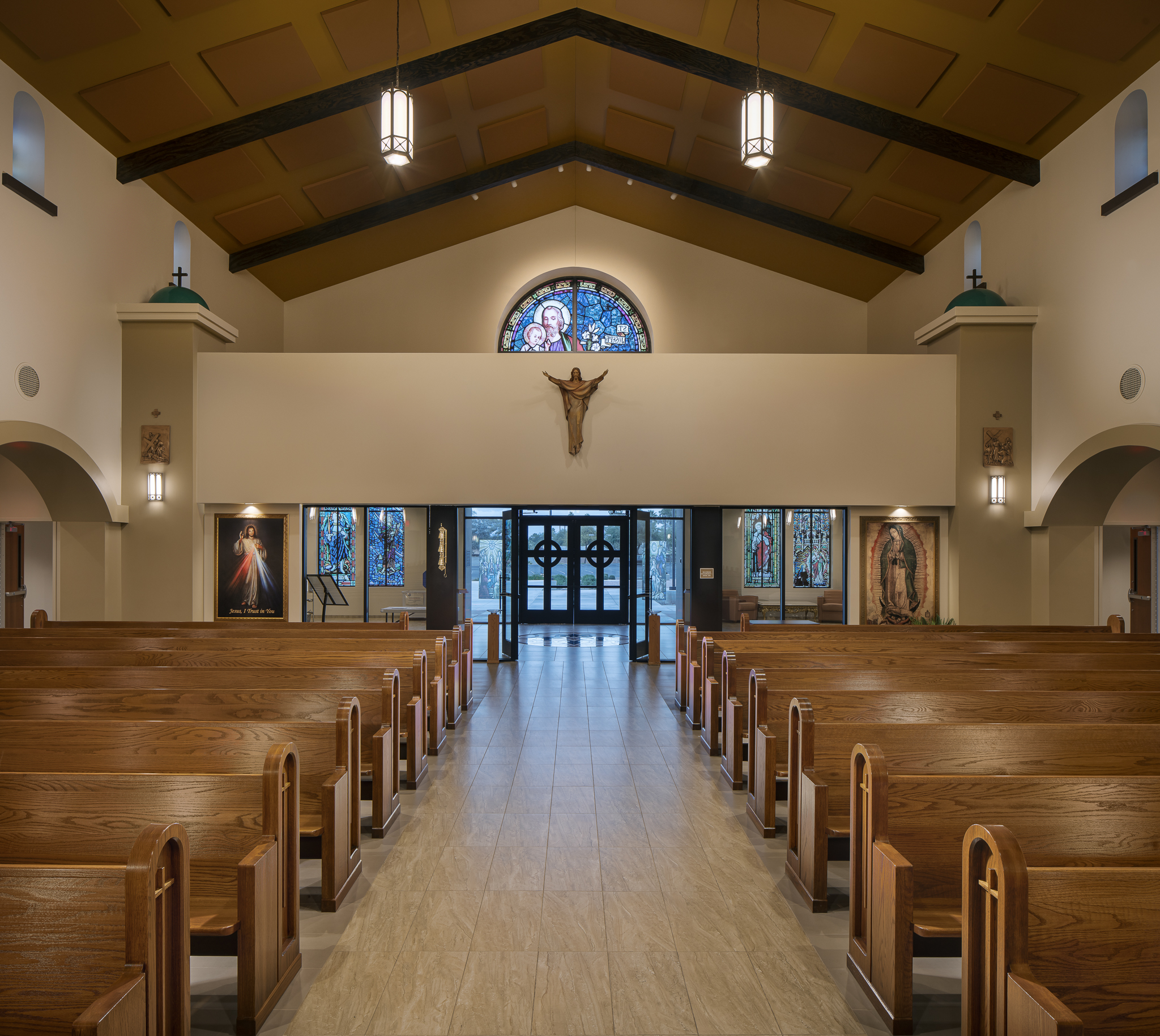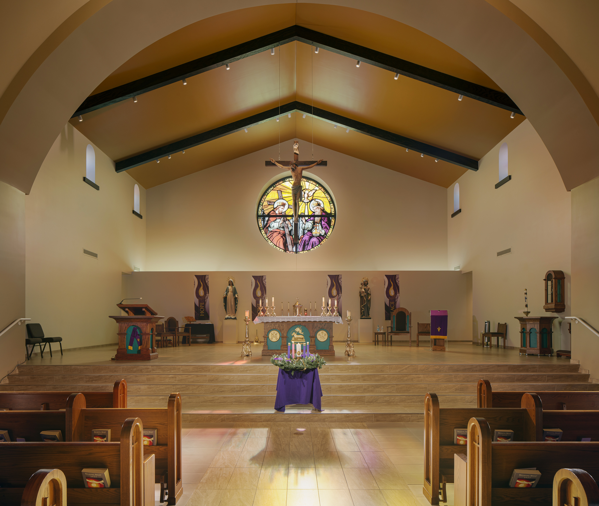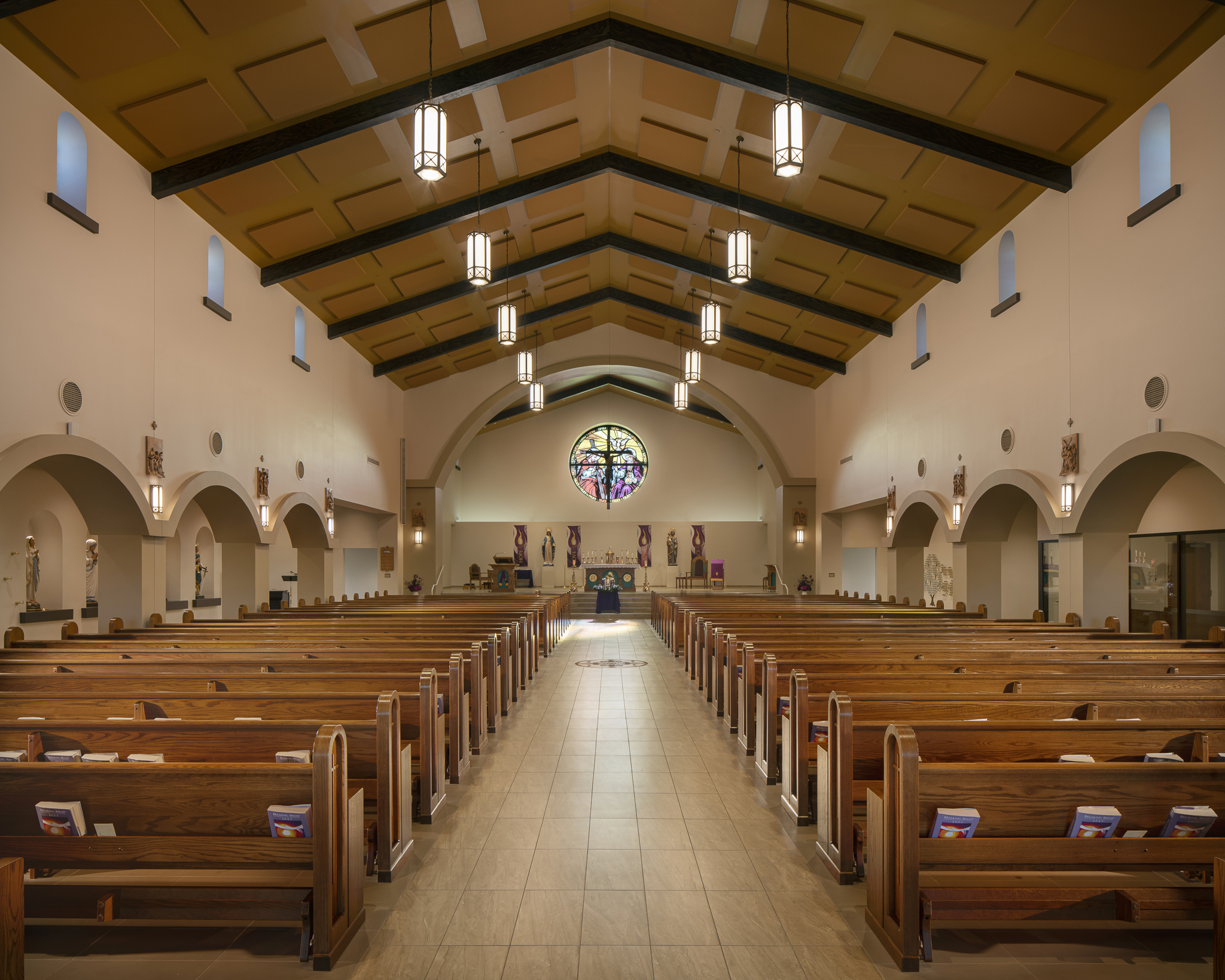 The St Joseph Catholic Church was created to replace a church that had been destroyed by a tragic fire. Parish members desired a facility with a different approach than the original, and so the new design was based on a “basilica” style that represents traditional form, space and order rooted in Catholicism.