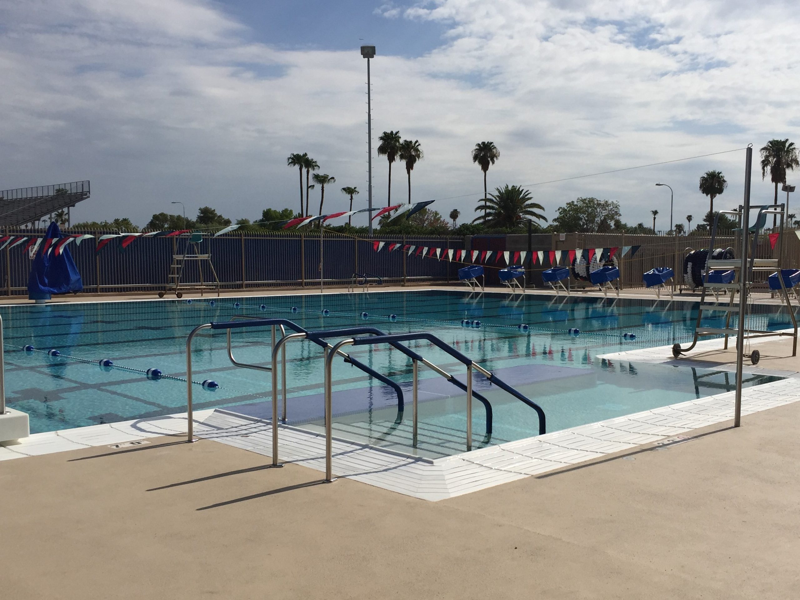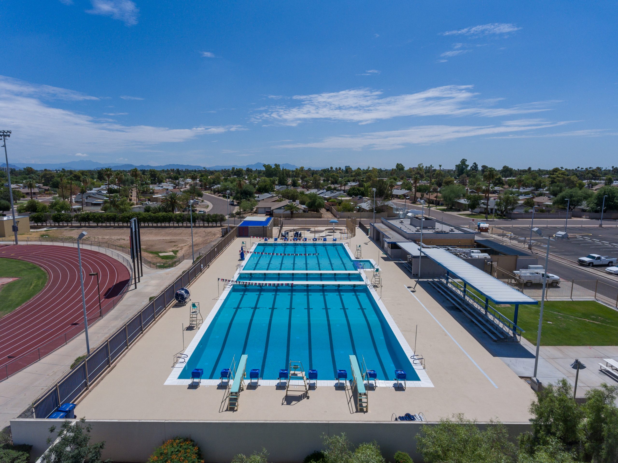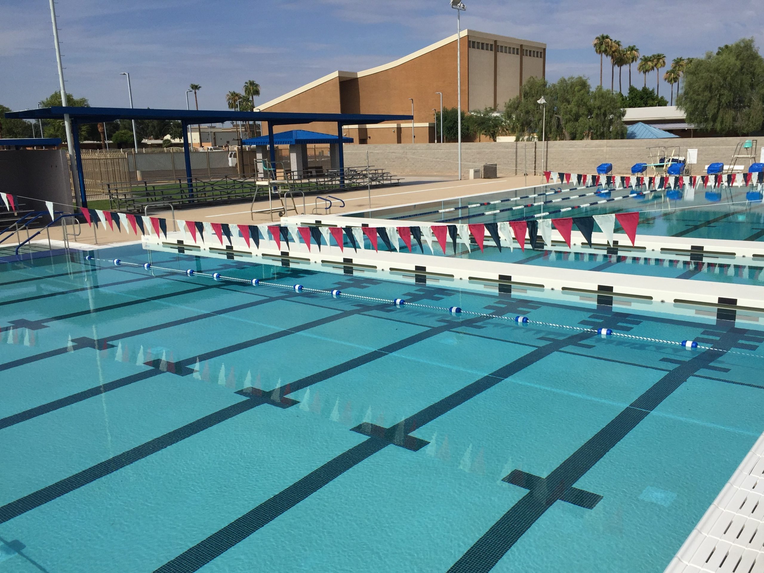 McClintock Pool was constructed by the City of Tempe on Tempe Union High School District property in 1964, and this competition and recreation pool served its neighborhood community, McClintock High School sports programs and local swim clubs for decades. Despite a remodel in 1996, maintenance and upkeep became an increasing challenge. And while the facility continued to be used for Tempe Schools physical education classes, swim team practice and competitions, by 2010 the condition of the pool prevented it from serving the public for recreational swimming until the necessary infrastructure improvements and pool renovations could be completed. In 2015 the city council approved funding to make the necessary improvements.