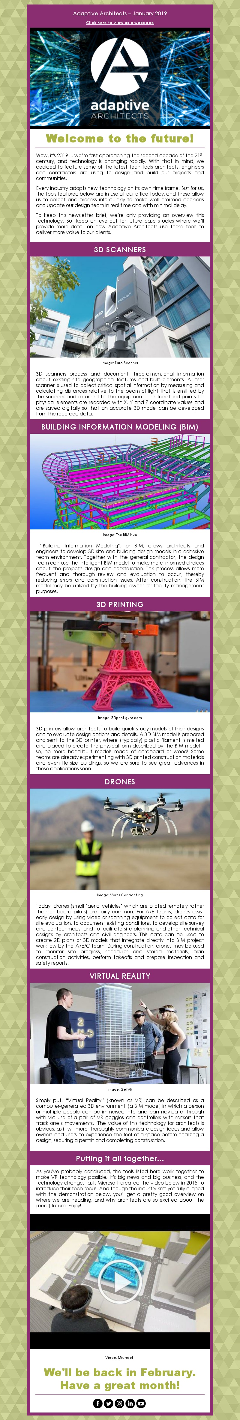 Adaptive Architects January 2019 Newsletter: Bring on the Technology!