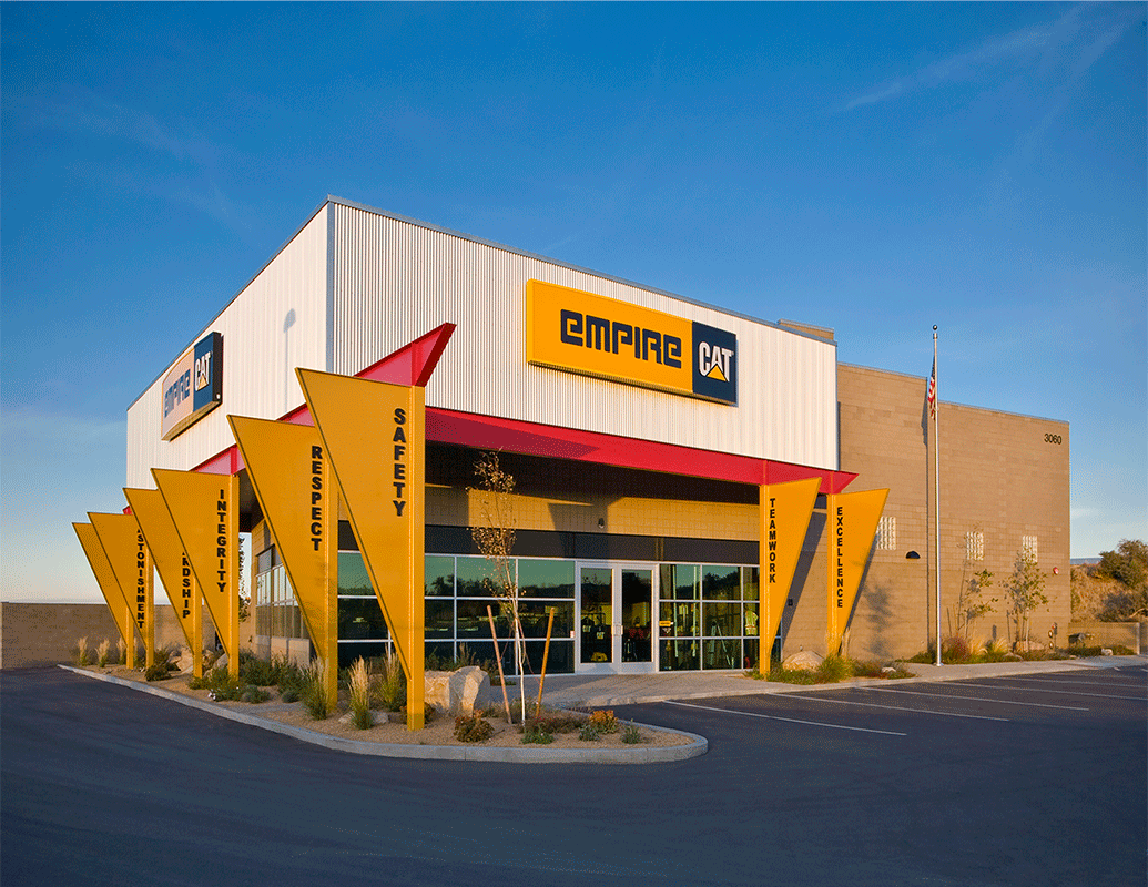The Empire Company is the local distributor / dealership for Caterpillar equipment .Adaptive Architects has designed a service facility for Empire that will serve as a prototype design to be utilized at several of the company’s locations, with minor adjustments made as necessary to the design which will accommodate varying site conditions. The Empire Service Facilities include office areas, warehouse space, truck and tractor repair bays, separate vehicle wash facilities and construction equipment rental services. Steel, masonry, glass and exposed beams will be some of the design elements that will be utilized for this project and reflect the industrial nature of Empire’s business. Corporate colors and Empire’s ‘value statements’ are utilized at the exterior of the buildings to reinforce the company image and goals.