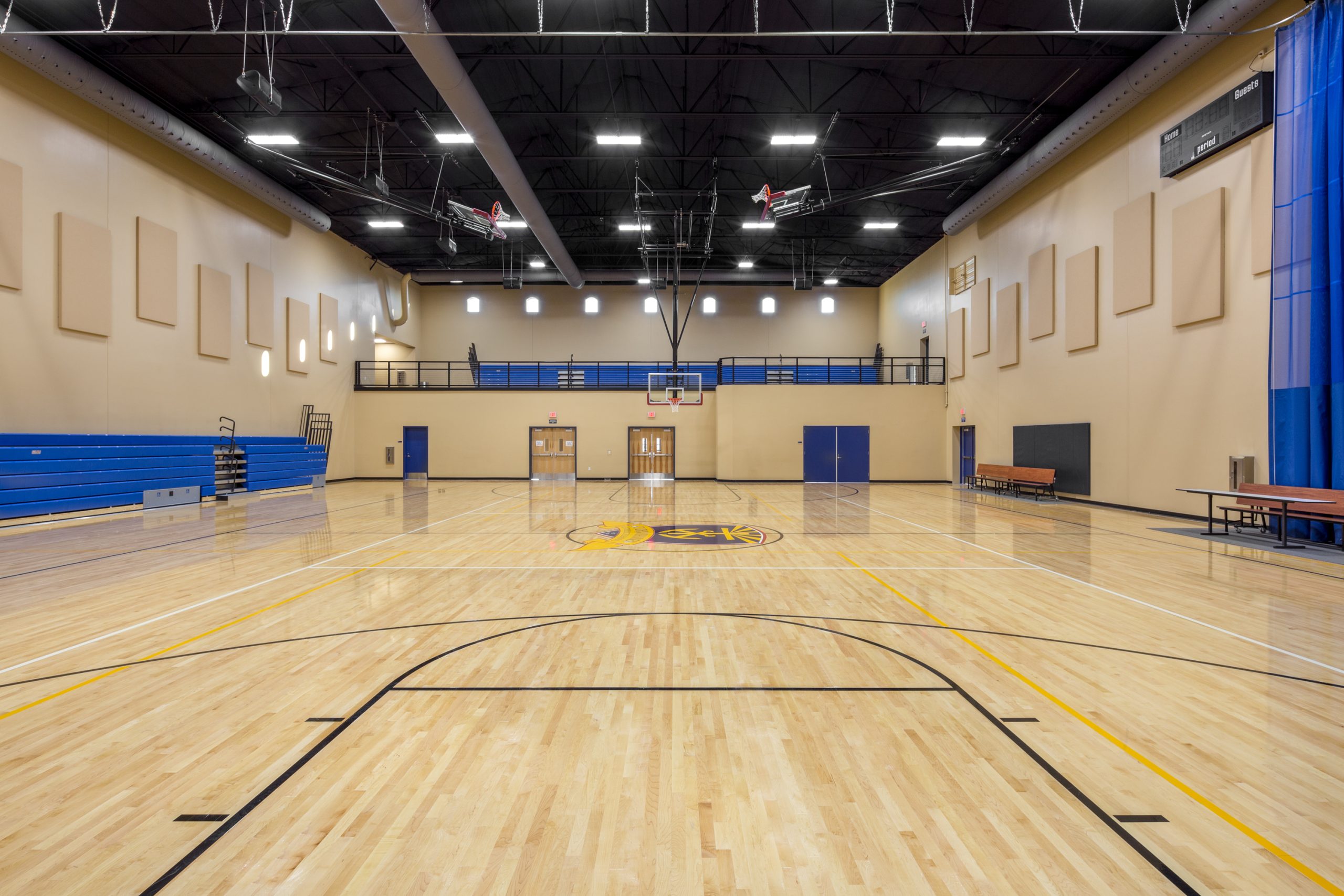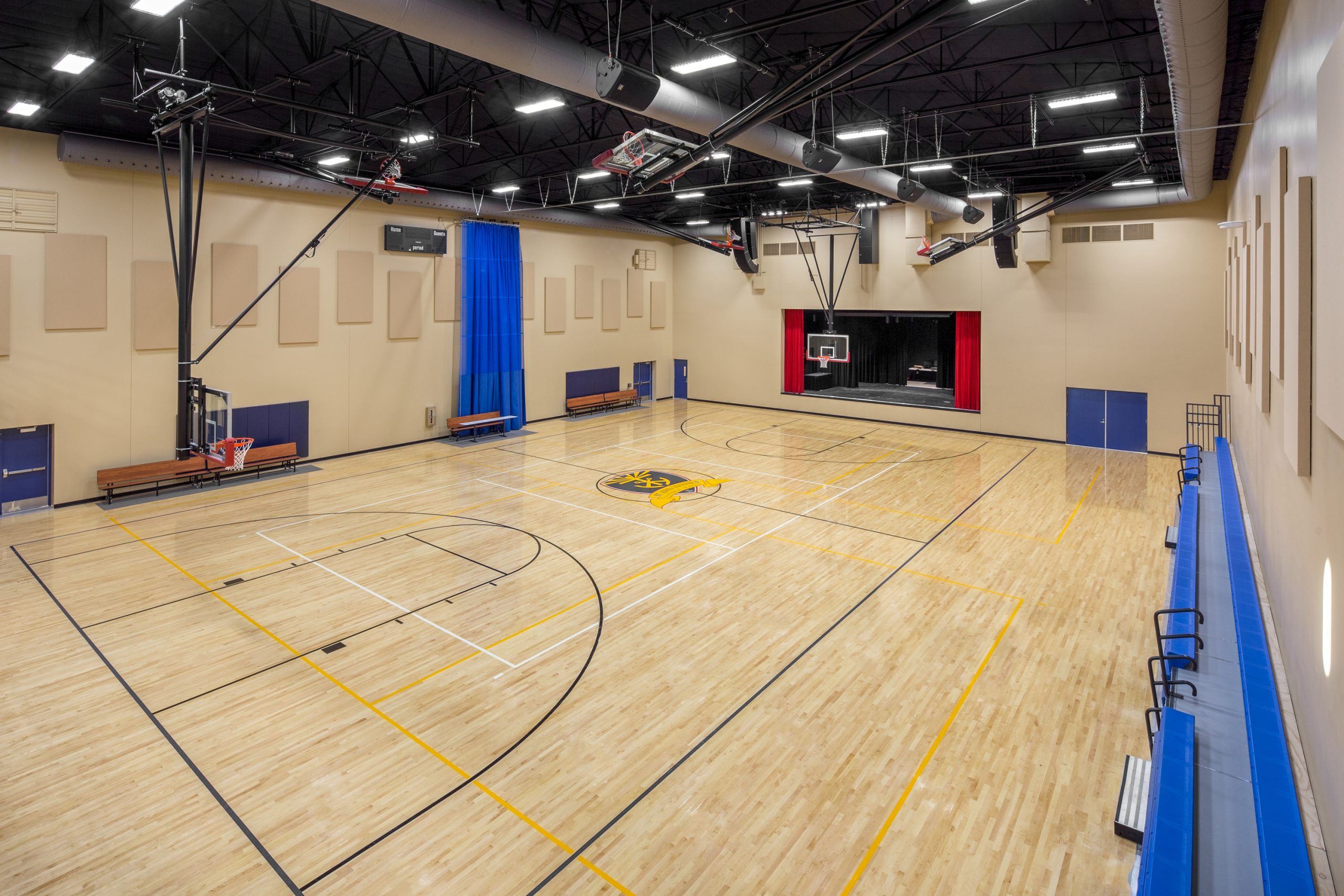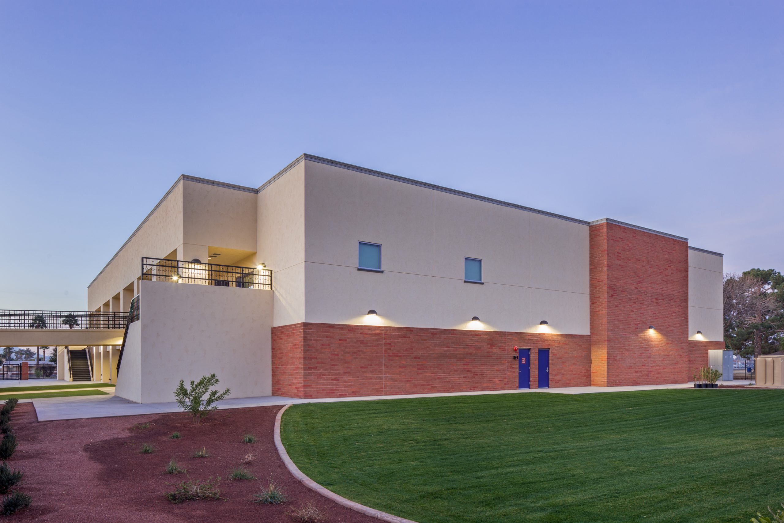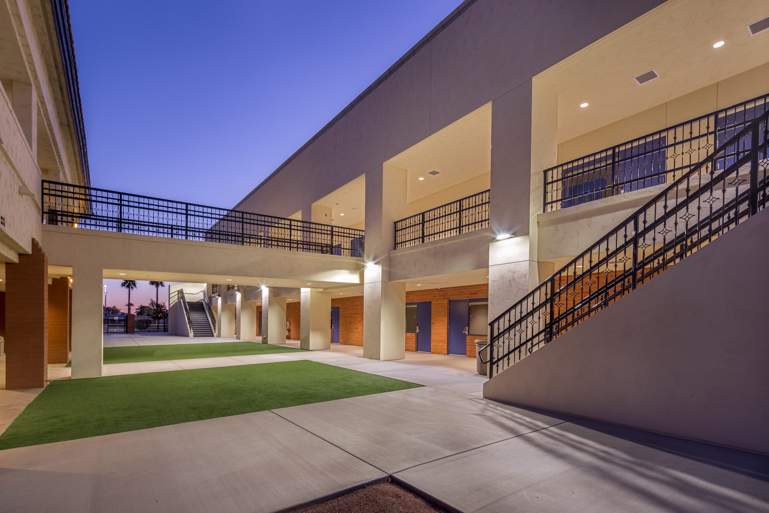 This new two-story multipurpose building adds needed program and expansion space to the existing St. John Vianney Catholic School campus in Goodyear, Arizona.  The building features a gymnasium, classrooms, kitchen and music areas, and has allowed the school to expand its curriculum, enhance student experience and provide a general overall improvement to the campus.