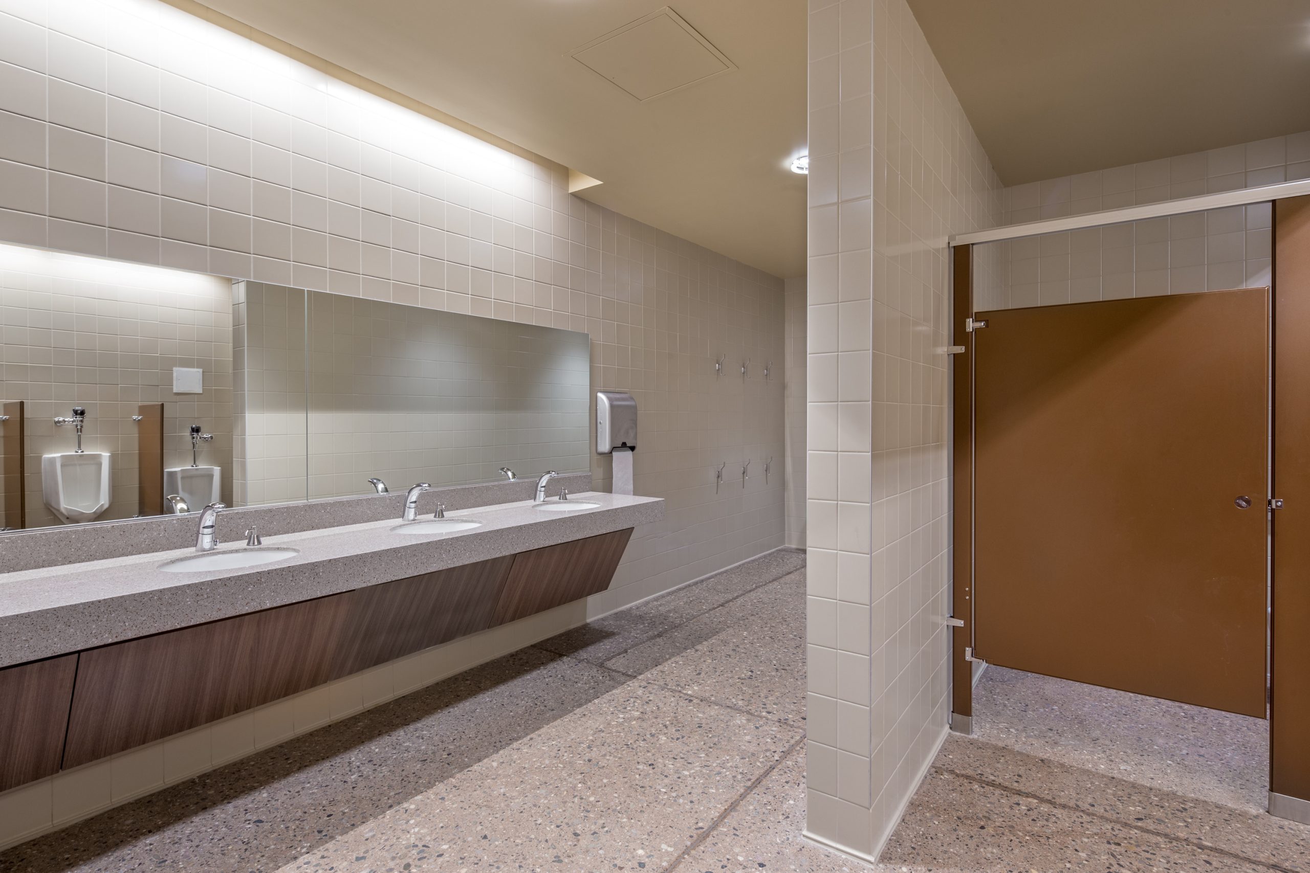 Minor site modifications include new sidewalks, new ADA ramps, and a new gate at an existing fire access lane.  A secondary fire access lane and gate was provided, along with site fencing and pedestrian gates.  A new shade tree protected turf play area, granite pathways, stone pavers, bench seating, and new landscaping materials further enhance the outdoor experience at this place for inspired learning.