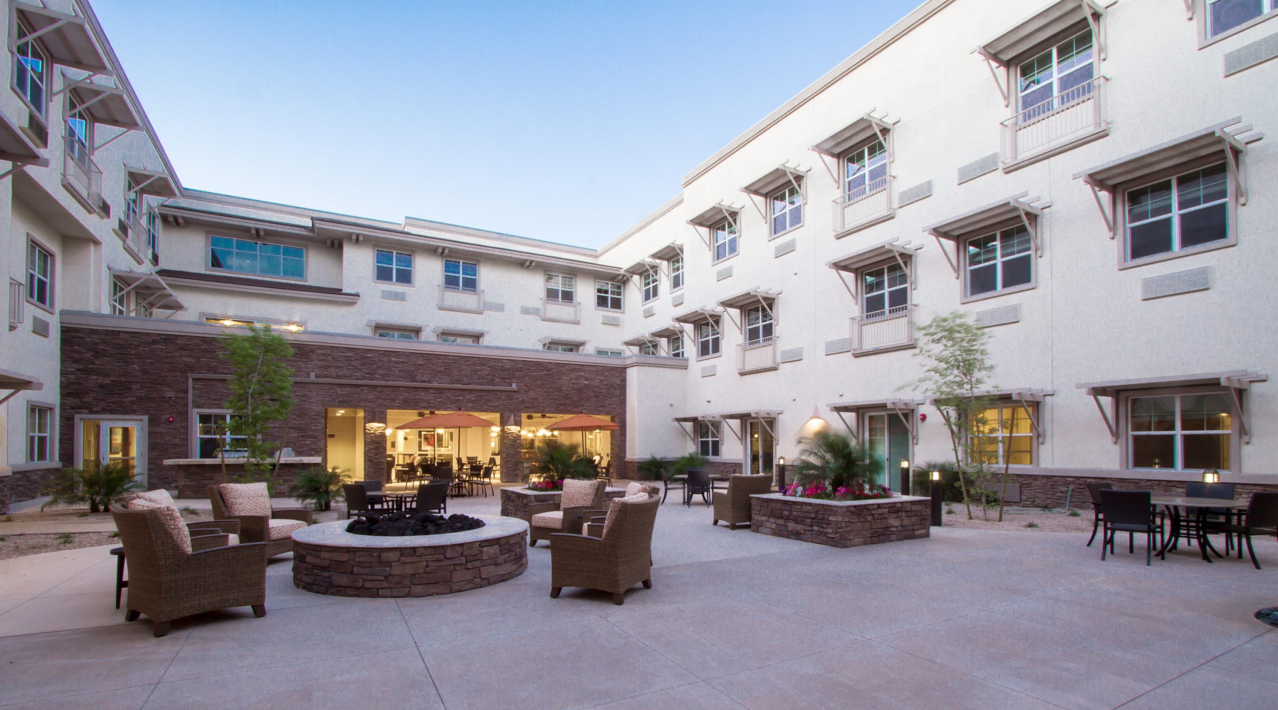 The Summit at Sunland Springs Assisted Living Center, Phase II at this full service senior living facility offering both memory care & assisted living centers, was designed to fully support the happiness, safety & dignity of its residents in an environment with the comforts of home. Common areas are spacious, easy-to-navigate & host a range of on-site services to accommodate a range of needs for the residents.